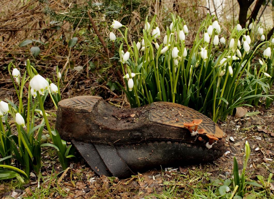 vor etwa einem Jahr entdeckte ich meinen verlorengeglaubten Clog zufällig. Wie hat der Schuh das angestellt, dass ich ihn in meiner damaligen Gartenunordnung wiederentdeckte? Mein Schuh war immer sehr anfüßig und er kannte meine Pilzverrücktheit. Er besorgte sich ein passendes Myzelium, wartete bis der Fruchtkörper ans Licht kam und schon wurde ich auf ihn aufmerksam.