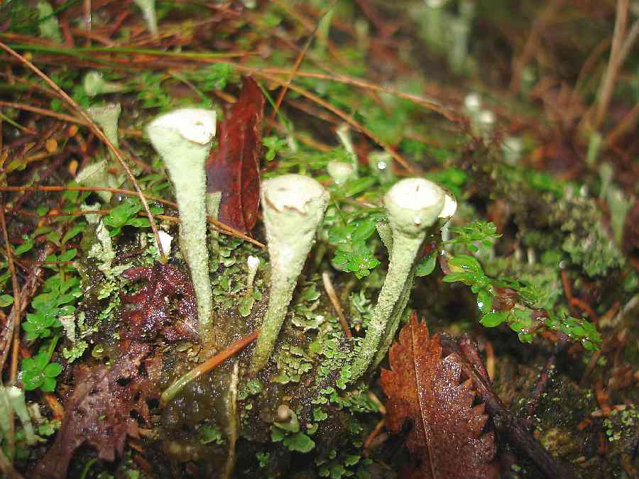 Das ist die Trompeten-Flechte (Cladonia fimbriata).