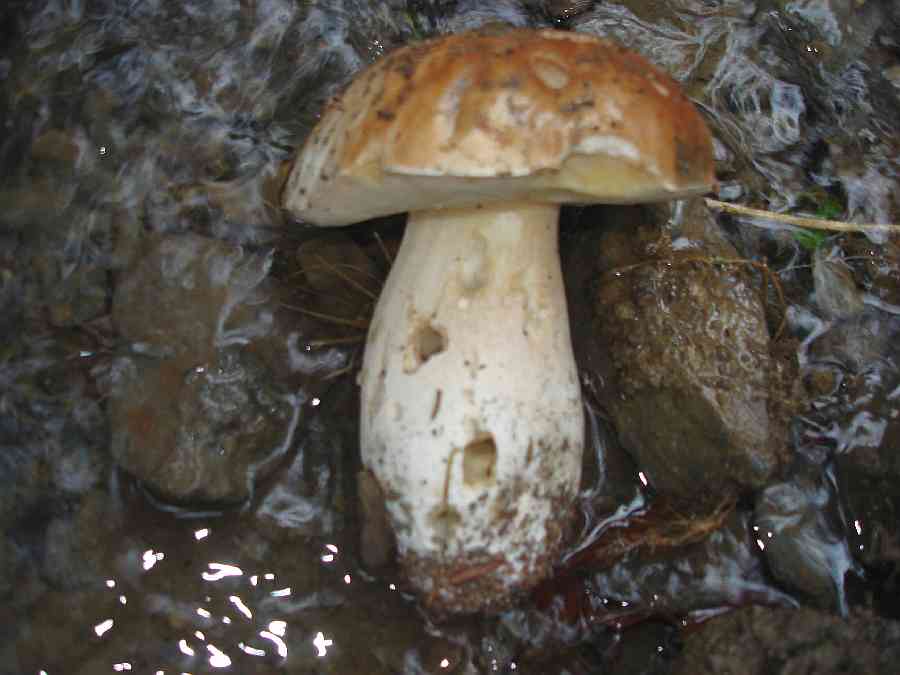 1. ... Hier härtet sich der erste Steinpilz schon mal bei einem erfrischenden Bad ab.