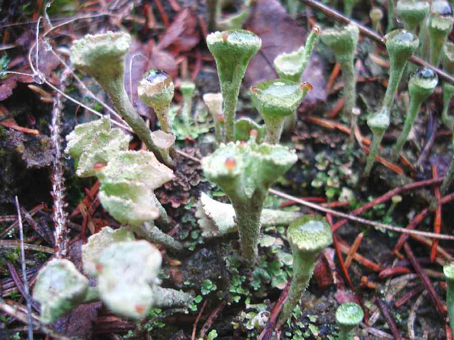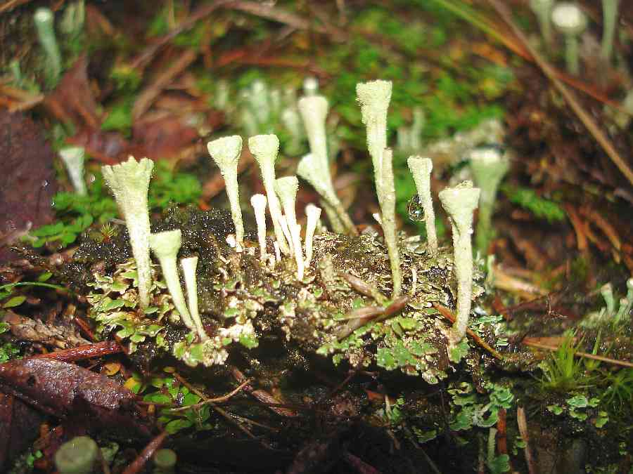 Das ist die Trompeten-Flechte (Cladonia fimbriata).
