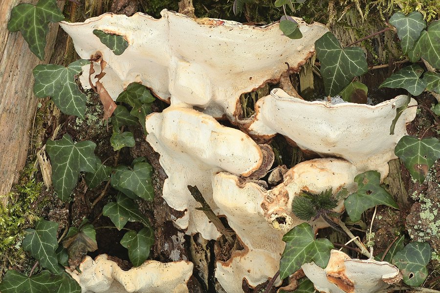 ich darf ein aktuelles Foto von Heterobasidion annosum (Wurzelschwamm) beisteuern, das den Aufnahmen von naturgucker nahe kommt. Ich glaube, man sieht deutliche Ähnlichkeiten.