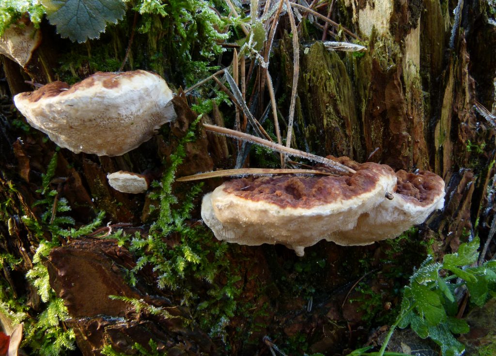 ich darf ein aktuelles Foto von Heterobasidion annosum (Wurzelschwamm) beisteuern, das den Aufnahmen von naturgucker nahe kommt. Ich glaube, man sieht deutliche Ähnlichkeiten.
