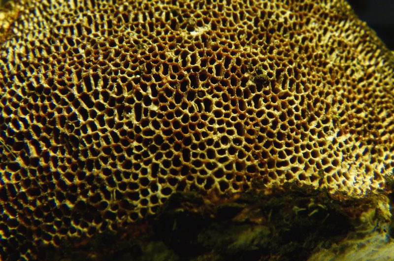 Die Konsistenz zeigte sich zäh-elastisch, beim Brechen geruchlos. Zur näheren Bestimmung füge ich auch noch Fotos der Unterseite, der Hutoberseite mit Verletzung bzw fehlender Huthaut sowie einen Querschnitt bei.