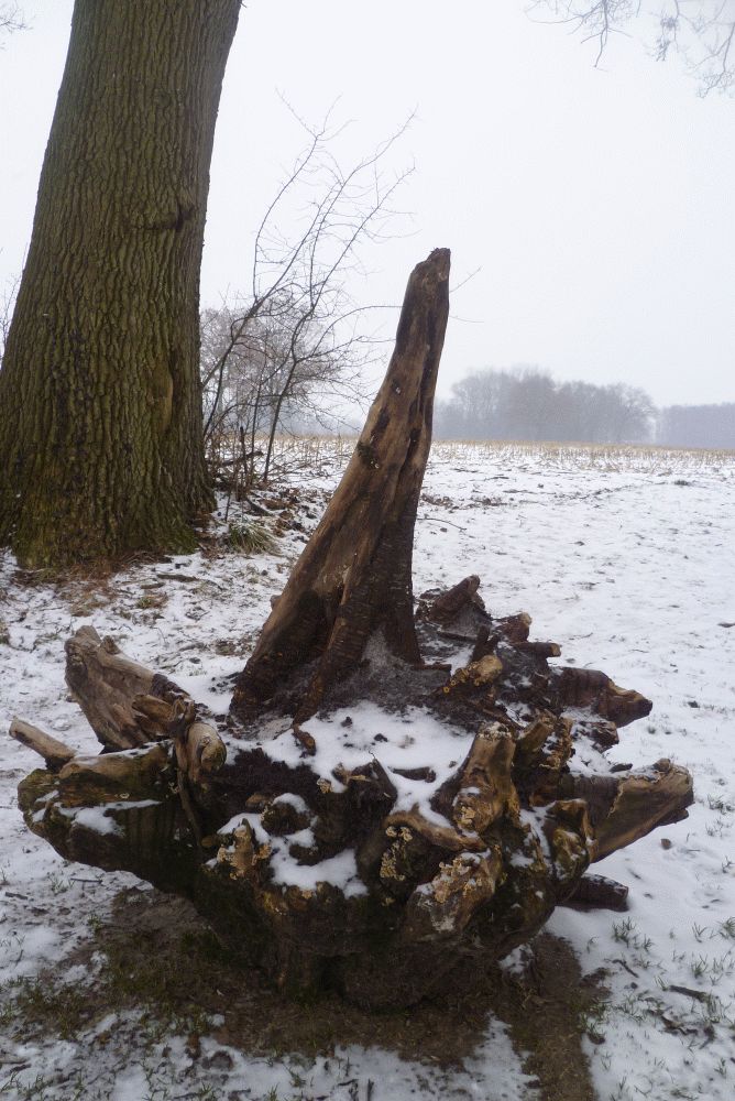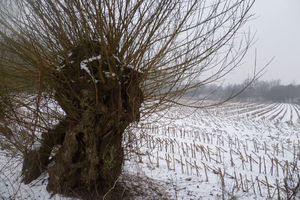 Und dann, Kopfweiden. Diese hier wundert sich gerade, dass es schon wieder Winter ist und sie den Mais auf dem Feld nicht mehr sieht.