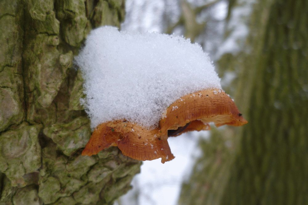 Ein Stückchen weiter tatsächlich mal keine goldgelben Zitterlinge oder Judasohren, nein, da flammten drei sammtige Füßchen!