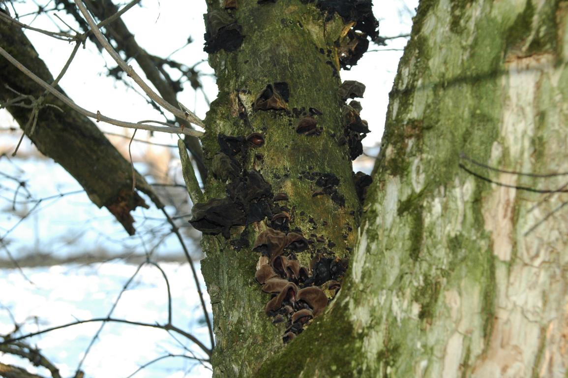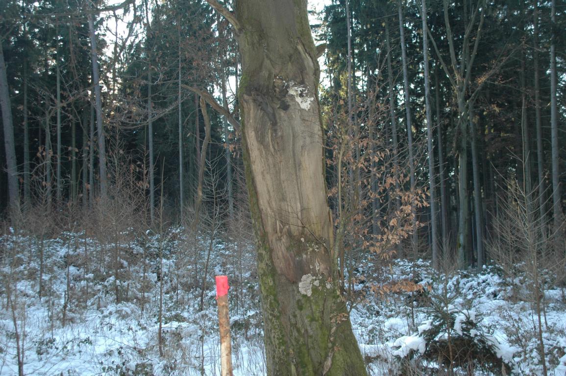 an der rinde des quer auf der bank liegendem ast entdeckt