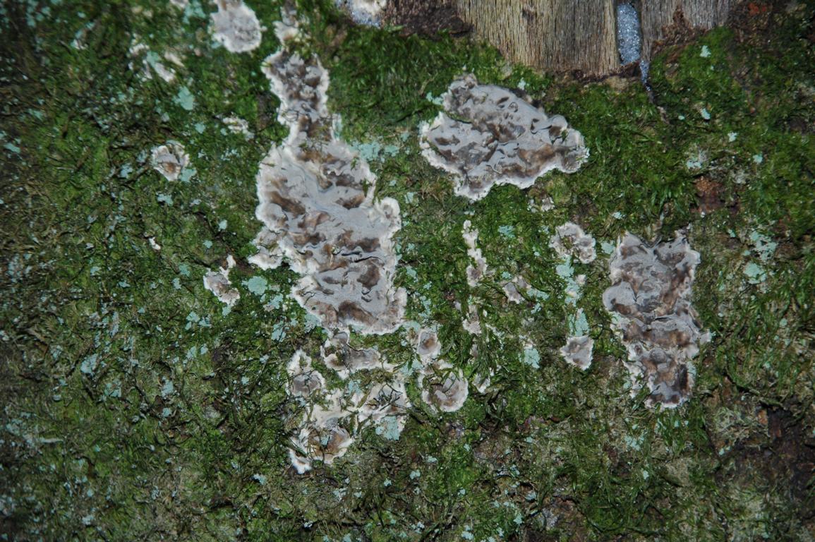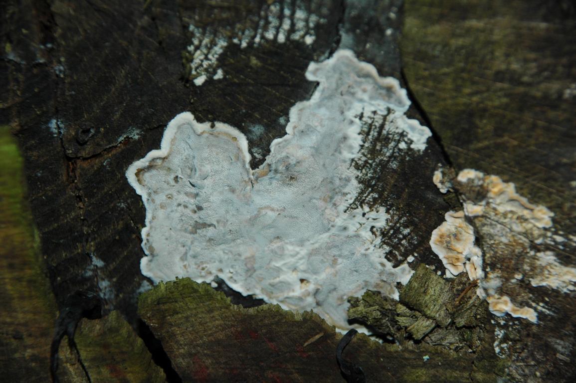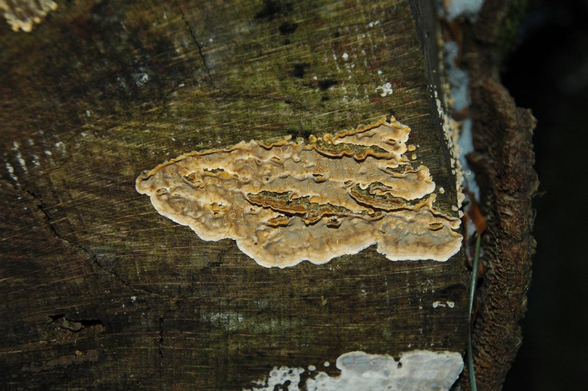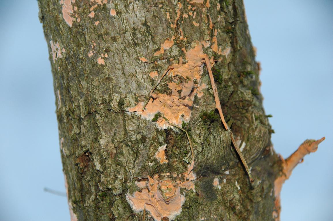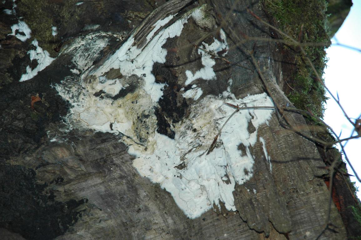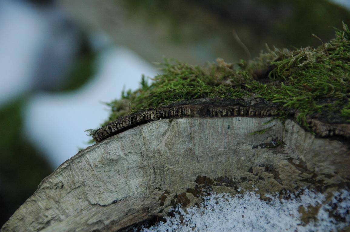 an der rinde des quer auf der bank liegendem ast entdeckt