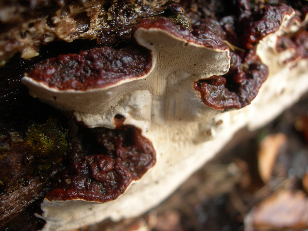 [2] Am laubbuch (tot), wahrscheinlich Rotbuche. Ich habe ein bischen zu hause mitgenomen zu sehen wie die farbe ist wann trochnen: Dunkelbraun, aber schön Rot wann nat.