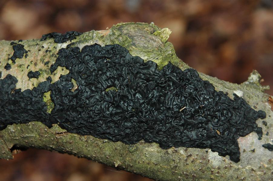 auf den Fotos ist definitiv der Warzige Drüsling (Exidia nigricans, syn. E. plana, E. glandulosa ss. Fries, non Bulliard) zu sehen.