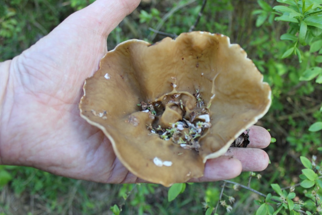 Beim Gassi gehen mit Sophie, schaue ich nur so, ins Gebüsch, und sehe einen ziemlich großen Morchelbecherling, keine fünfzig Meter weiter finde ich einen neuen Speisemorchel Fundort, immerhin stolze 480g, und ein Zwillingspärchen.