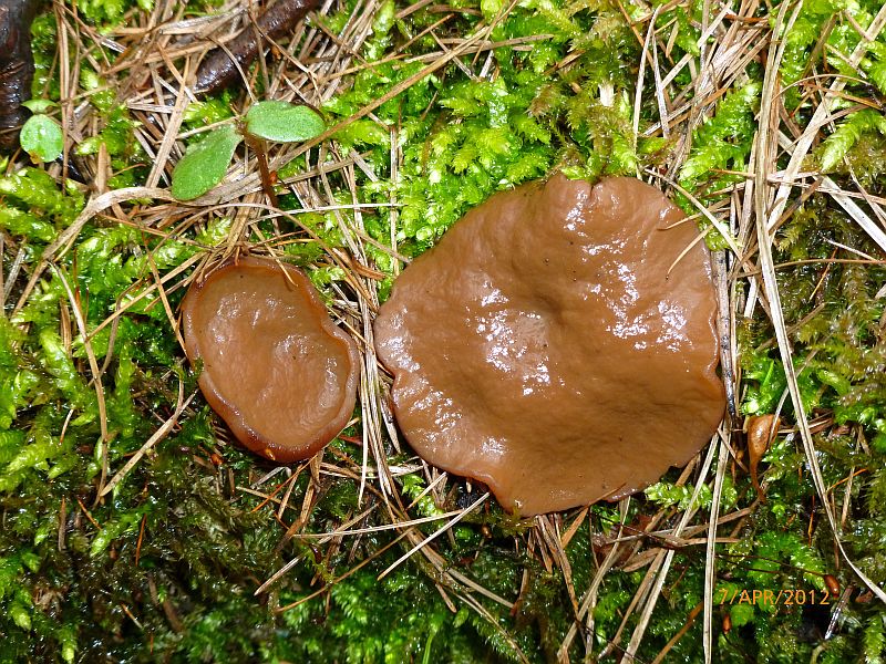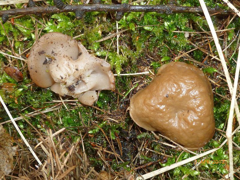 Bei Nando in Sachsen konnte ich auch zum ersten Mal die Schildförmige Scheiben - Lorchel (Discina perlata) an altem, bemoostem Nadelholz finden: