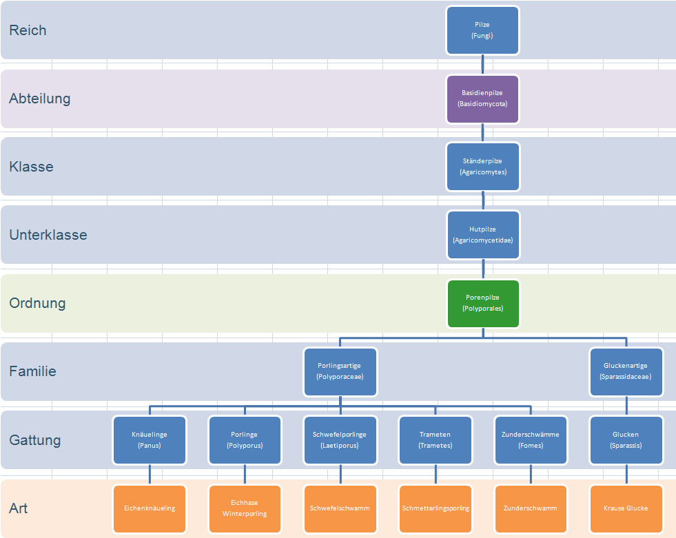 Ansonsten kann ich dir aus meinen Bemühungen leider nur diesen unvollständigen Überblick des für dich relevanten Bereichs Polyporales anbieten: