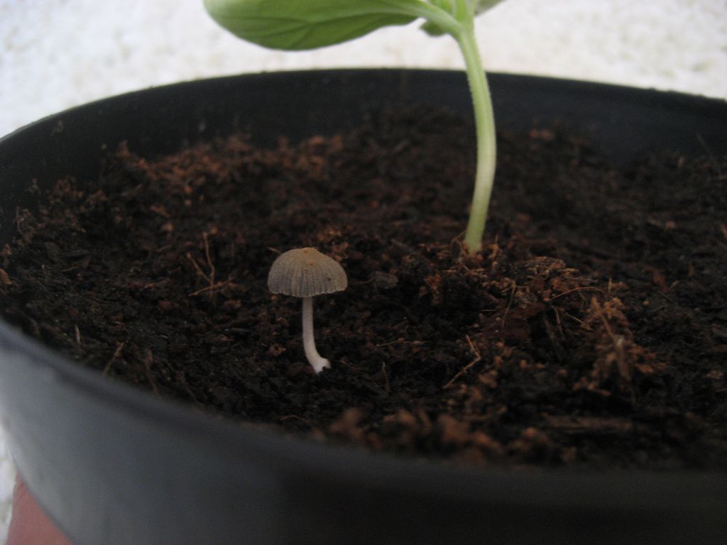 Pilze in der Tomaten und Gurkenerde