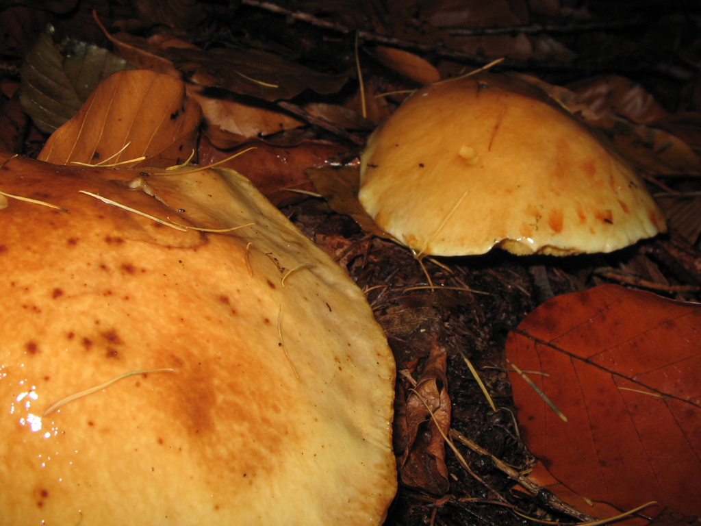 Über die nächsten Wochen traf ich allerdings auch an Stellen auf diese vermeindlichen Goldröhrlinge, an denen es überhaupt keine Lärchen - und somit ja wohl auch keine Röhrlinge dieses Namens - gab, sondern sich Buchen breit machten und bestenfalls in geringer Entfernung Tannen anzutreffen waren.