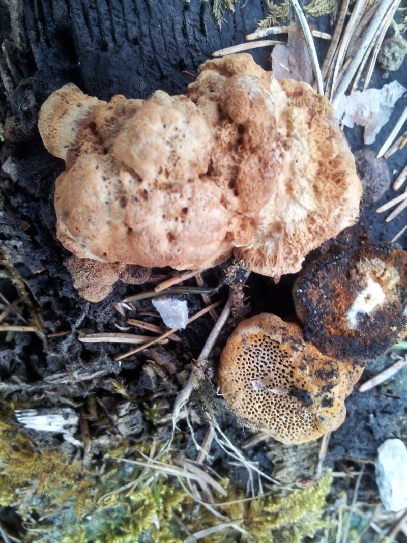 Da hab ich gar keine Ahnung... Der Teil mit den Poren auch ca. 2cm groß, Wahrscheinlich auf altem Fichtenstumpf; ca. 650m auf Kalk...