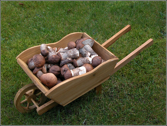 Vergiss die Schubkarre nicht, für den Abtransport der evtl. gefundenen Morcheln, Steinis und Massen an Miniaturpilzken.