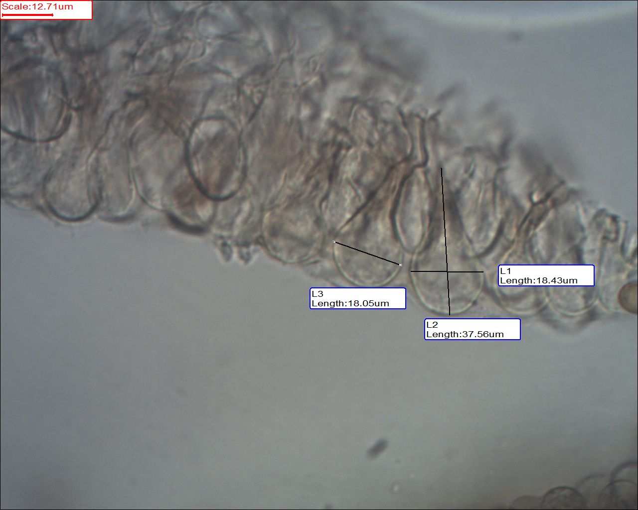 Mit der Sporengröße bin ich mir nicht so 100% sicher. Habe das Mikroskop mit Erythrozyten kallibriert.