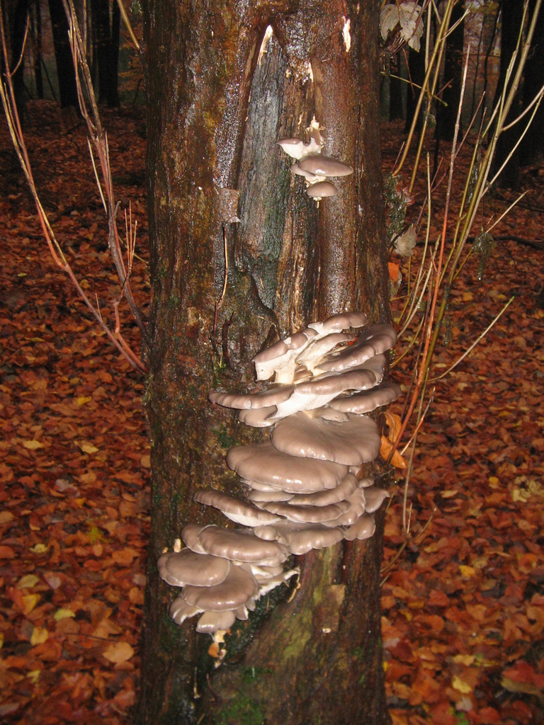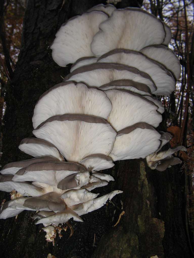 Und um in der Verwandschaft zu bleiben - es hat ihnen nichts gebracht sich hinter einem Ahorn zu verstecken, gesehen habe ich sie glücklicher Weise trotzdem. Und wenn ihnen nicht noch ein besseres Versteck einfällt, werden diese Austernseitlinge (Pleurotus ostreatus) morgen geerntet.