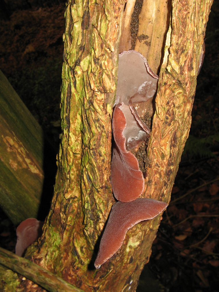 Und wo ihr jetzt schon wisst, was morgen auf den Tisch kommt - die hier gab's gestern. Zumindest soviele von den Judasohren (Auricularia auricula-judae) wie im chinesischen Mahl zu vertreten waren. Der Rest wird getrocknet.