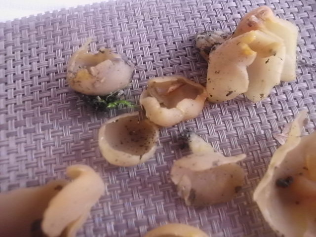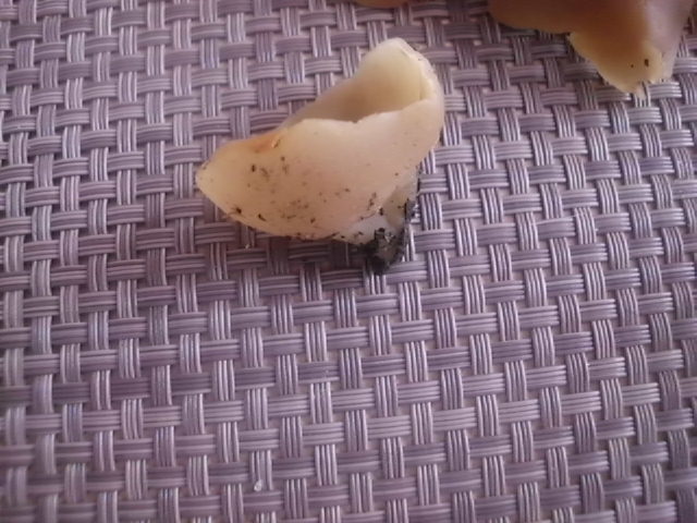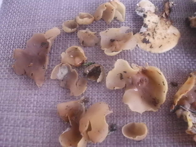 Dann noch eine Handvoll ,,Becherlinge ``,von der Konsistenz ähnlich den chinesischen Morcheln , doch sehr emfindlich , sind trotz vorsichtigem Transport im Körbchen auseinandergebrochen.