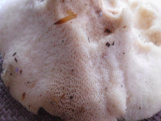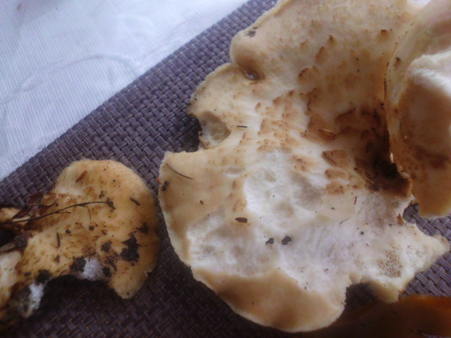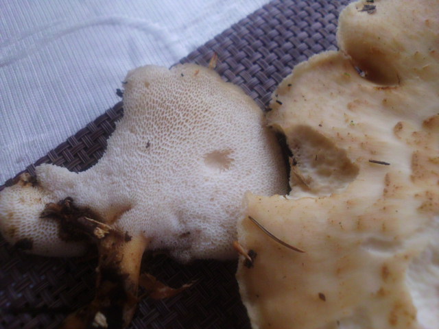 Morcheln haben wir leider keine Gefunden, doch 2 an abgstorbenen Bäumen wachsende ,, Porlinge `` hellgelb , sehr angenehmer Pilzgeruch, die Poren beim jüngeren Pilz klein und fast weiß und beim größeren deutlich größer , teilweise bewohnt.