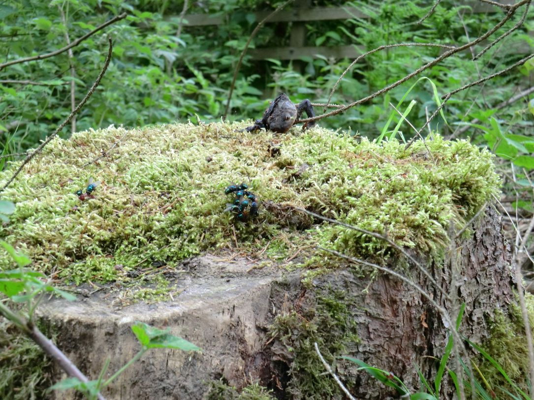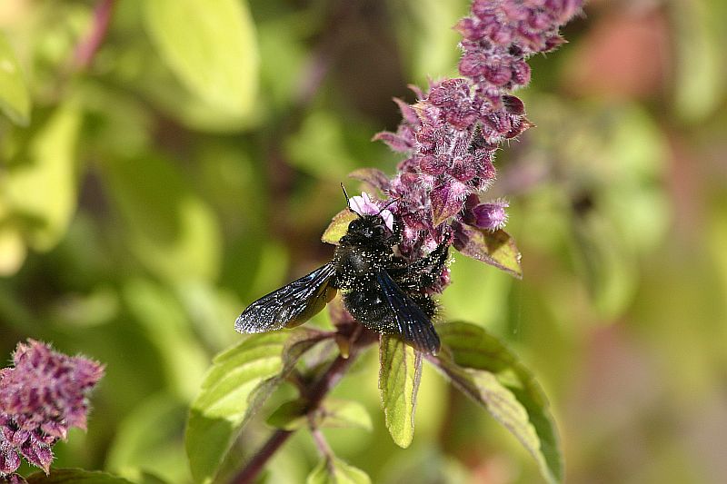 Im zeitigen Frühjahr und im Spätherbst sind die Holzbienen zu Gast in unserem Garten, sonst sehe ich sie nie. Die bereitgestellten Nisthilfen haben sie -trotz entsprechender Lochgröße- leider nicht angenommen.