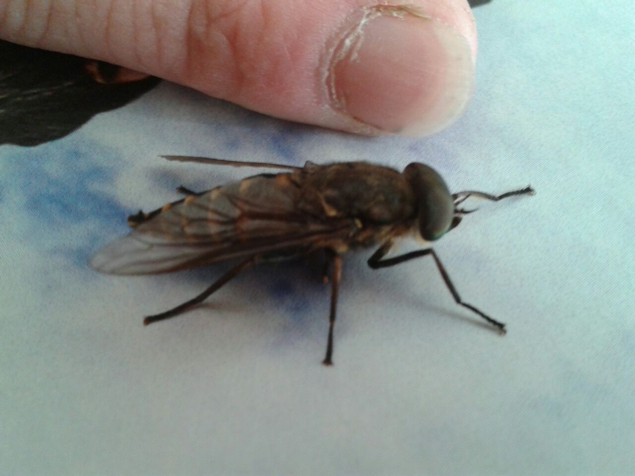 Jetzt schaue ich immer Fotos dieser Bremse und bin mir über die Größe im Unklaren.Ich schau meinen Finger und messe und schwanke zwischen 2,5 und 3cm.Ich fand jedenfalls die Größe imposant für so ein Insekt.