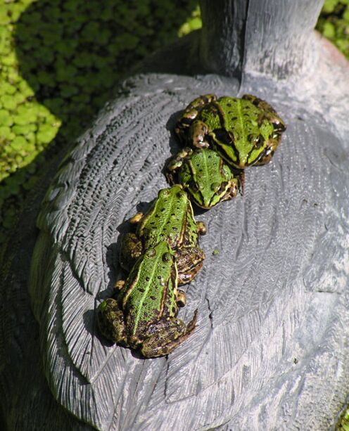 P.S. Die Lurche gehören übrigens zu zwei ganz verschiedenen Arten: Der kleinere ist ein Laubfrosch, der große ein Teich- oder ein Seefrosch :).