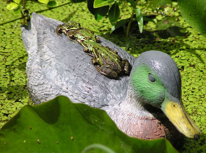 P.S. Die Lurche gehören übrigens zu zwei ganz verschiedenen Arten: Der kleinere ist ein Laubfrosch, der große ein Teich- oder ein Seefrosch :).