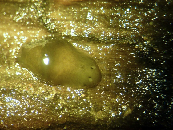 ...und ich vermute eine Planarie, einen Plattwurm; typisch sind die Becheraugen.