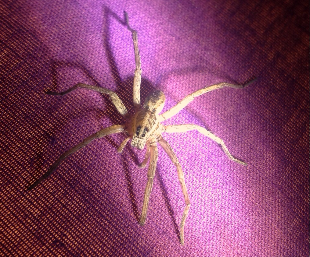 Kein "Starfoto" - gerade mit dem iPad aufgenommen - aber ich fand diese (vermutlich) Wolfsspinne mit fast 5 cm Spannweite, die mich gerade von meiner Lampe aus angrinst, wirklich beeindruckend!Lustig finde ich, dass diese Tiere beim Laufen richtig laut sind.