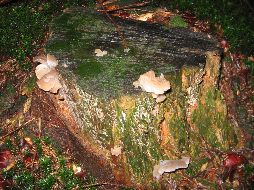 Neben den Hydnums gab es noch reichlich Nachahmer dieser Art, die ich trotz ihrer Imitationsversuche als Zitterzähne (Pseudohydnum gelatinosum) identifizieren konnte.