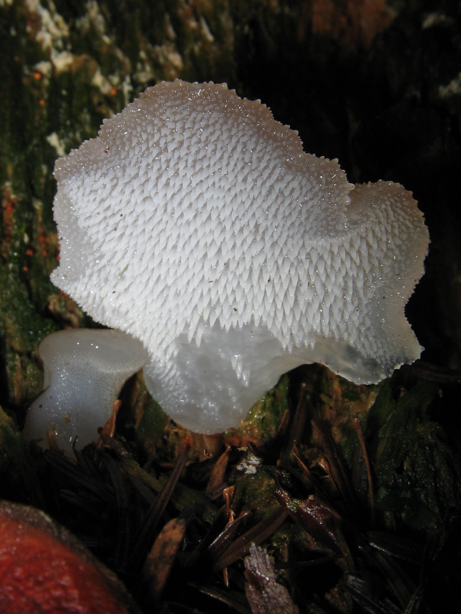 Neben den Hydnums gab es noch reichlich Nachahmer dieser Art, die ich trotz ihrer Imitationsversuche als Zitterzähne (Pseudohydnum gelatinosum) identifizieren konnte.