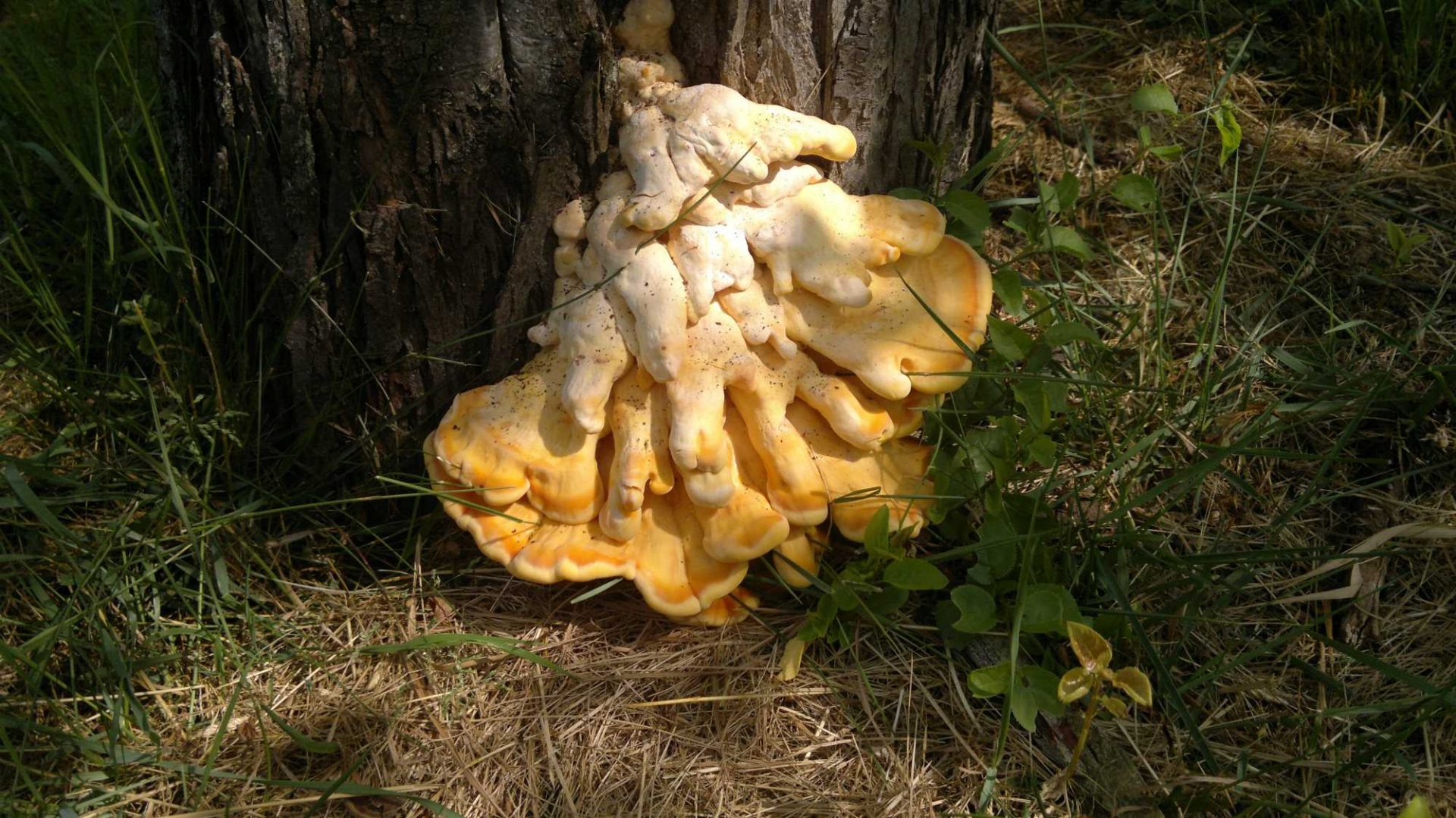 Spannend, wie sehr der Schwefelporling in der einen Woche gewachsen ist! Ich muss mal die Stelle hier schleunigst checken, sonst wird der noch zu zäh