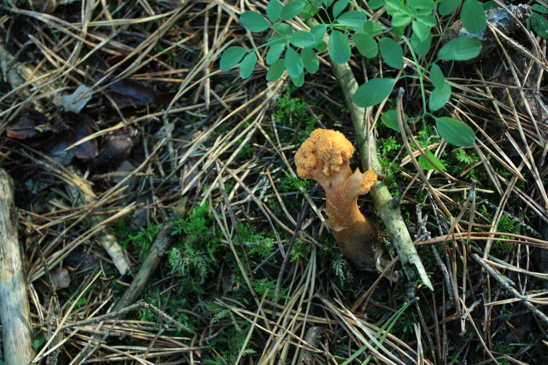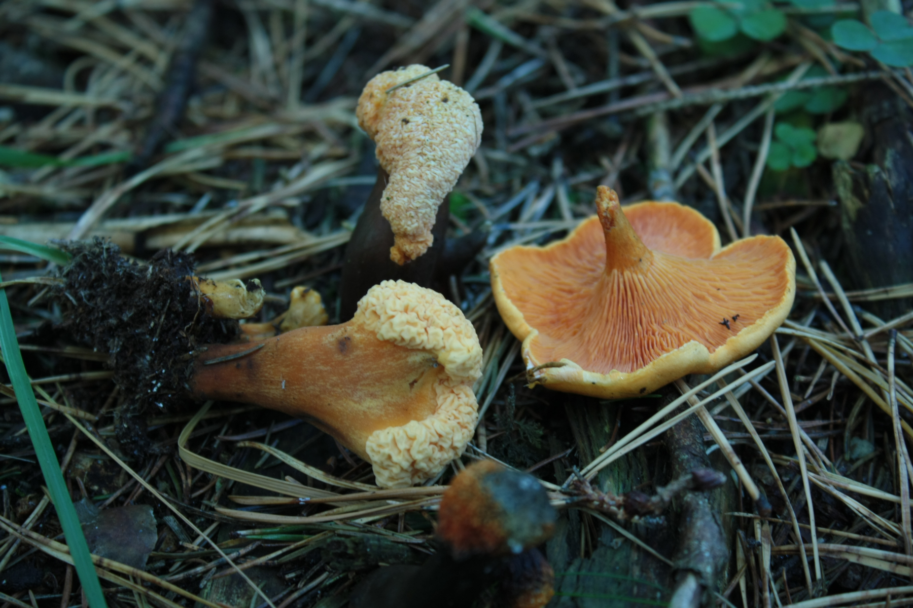 Es scheinen etwas verkrümpelt gewachsene Falsche Pfifferlinge zu sein. Davon fanden sich dort ein paar mehr solcher Teile.