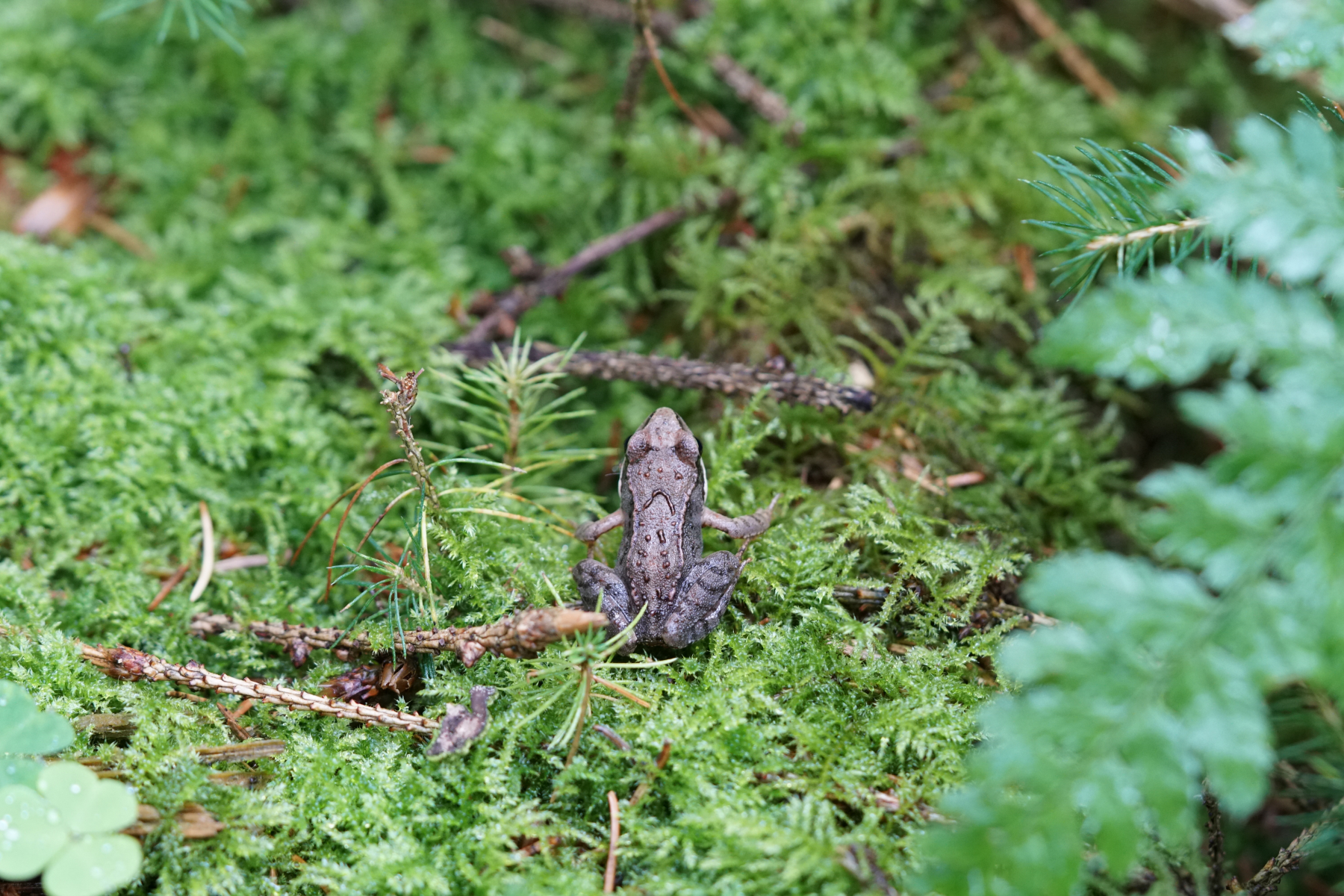 Er und seine vielen Kumpels, die gerade durch den Wald unken, finden das auch. Er trägt seine Gemütslage eindeutig auf der Rückseite zur Schau.