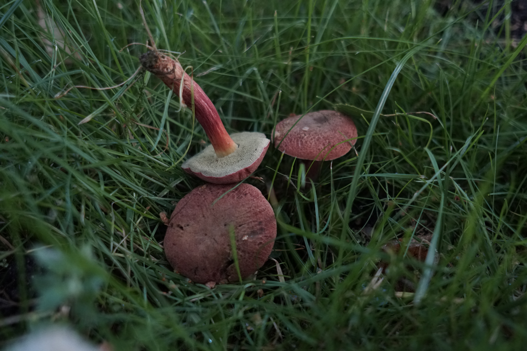 Also das was früher alles Rotfüßchen und Filzröhrling hieß. Die haben sich inzwischen ja alle zerstritten und gehen getrennte Wege. Daher kümmere ich mich nicht mehr sonderlich um die. Aber hübsche waren heute jede Menge vertreten. Der Blutrote Filzröhrling, Xerocomellus rubellus nämlich, frisch, zahlreich, farbenfroh. Immer wieder toll anzusehen.