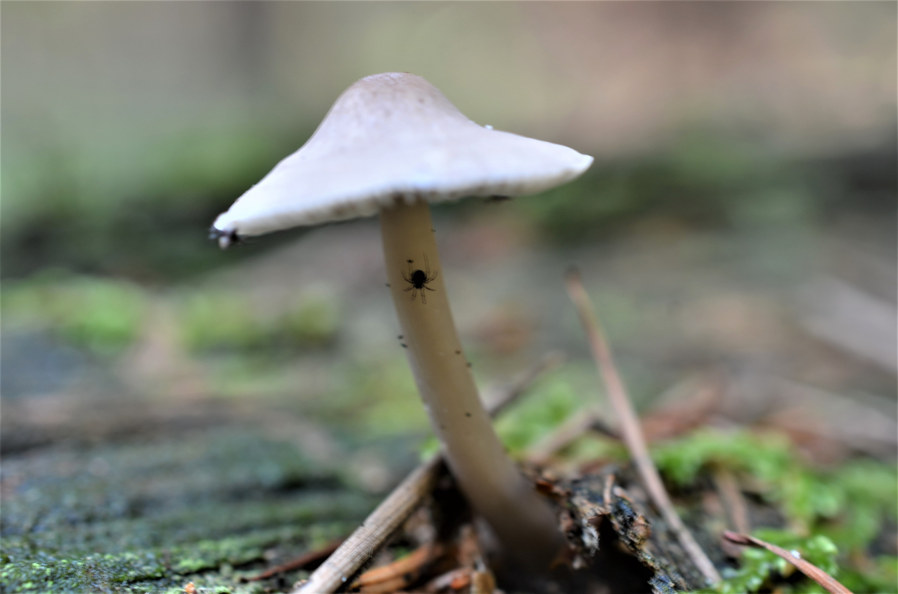 Mycena nicht näher bestimmt, mit 8-beinigem Gast