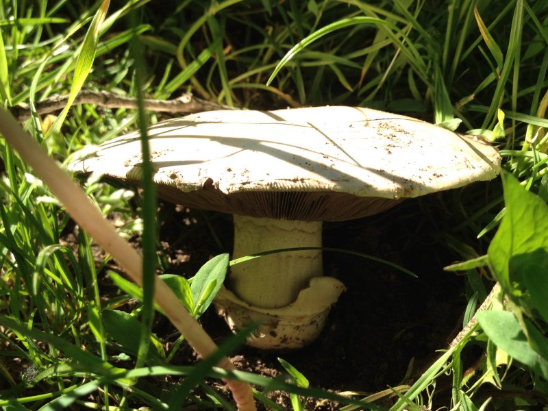Als Zugabe gibt es noch noch einen recht stattlichen Champignon, den ich Anfang Mai im Stadtgebiet gefunden habe - ich tippe da auf den Stadt-Champignon (Agaricus bitorquis).