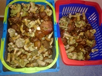 Ca. 6kg ältere bis uralte Maronen, ca. 5kg ganz knackige Maronen, 2 sehr schöne Steinpilze. Hallimasch geht langsam los, sehr viele kleine gefunden.