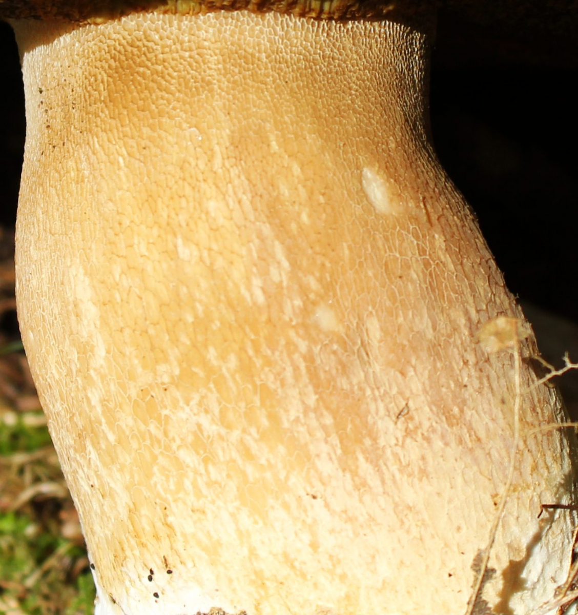Da wir den Steinpilz in einem überwiegend mit Eichen bestückten Wald gefunden haben bin ich einfach mal von Sommersteinpilz ausgegangen... Habe keine Fichte in der Umgebung wahrgenommen. Kann mich da aber auch getäuscht haben, so genau habe ich nicht drauf geachtet. Das Netz sieht man auf dem ersten Bild nicht so gut, deshalb füge hier noch einmal eine vergrößerte Detailaufnahme des Stiels ein, finde das Netz geht da eigentlich relativ weit herunter... :/