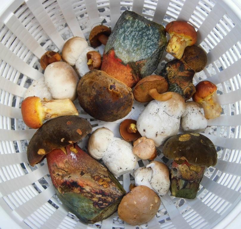 Im Juli und August war dann richtig viel los: Steinpilze, Hexenröhrlinge, unmengen Amethyst-Pfifferlinge, Goldröhrlinge, Semmelstoppelpilze, Perlpilze, Rotfüßchen, Mohrenkopfmilchlinge, Maronen....weniger vertreten waren Birkenpilze, Rotkappen und Riesenschirmlinge.Der September ist ähnlich gut und artenreich verlaufen wie Juli/August. Der letzte Super-Fund-Tag war der 29.09.13 mit 25 Semmelstoppelpilzen, 25 Marönchen, unzählbaren graublättrigen Schwefelköpfen, 15 Amethystpfifferlingen, 5 Hexenröhrlingen, zwei Birkenpilzen, ca. 50 Trompetenpfifferlingen und 15 Rotfüßchen.