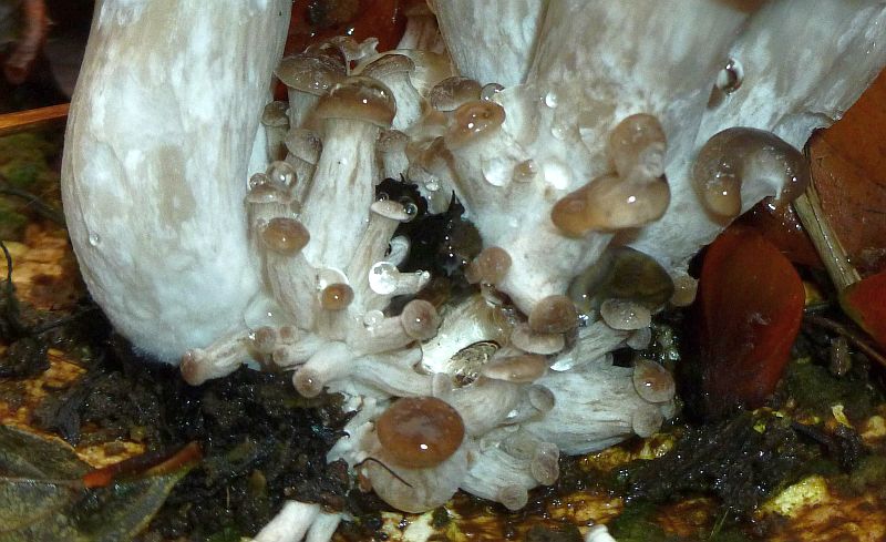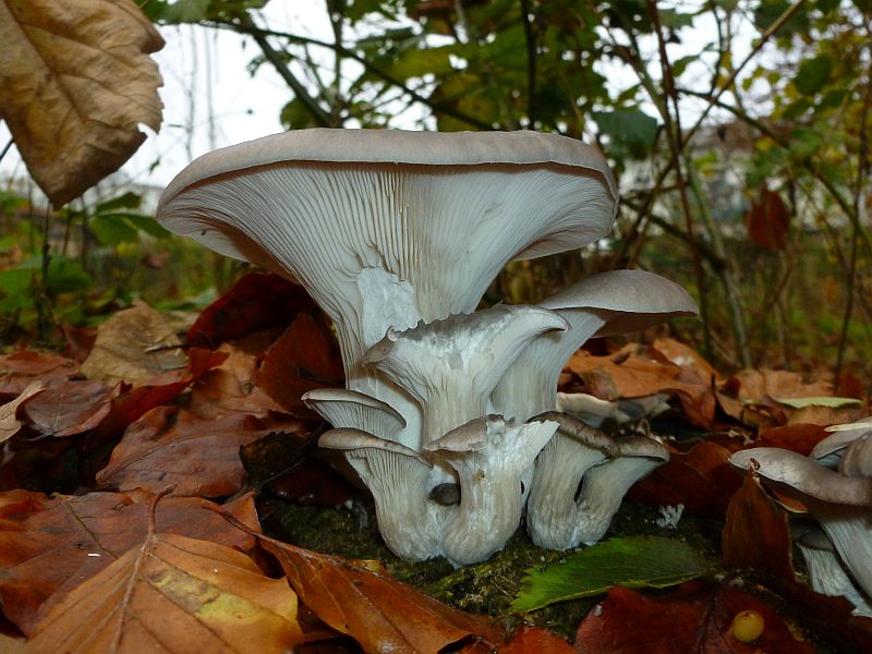 • Ich habe übrigens die Erfahrung gemacht, das man beim Bootfahren supergut Pilze sammeln kann. Jetzt im Winter auch Austern.. klar, mögen ja Wasser. Außerdem kommt man an Stellen vorbei, die sonst niemand je betritt, bei den Freunden hier, von denen ich mal 2 Hände voll mitnahm, vermute ich allerdings den Eichenseitling hinter der hellen Farbe (man beachte auch das Substrat - Eiche) oder was denkt Ihr?