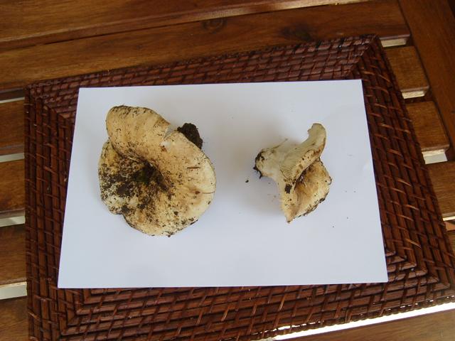 Hier wachsen viel von dieser, ich vermute 'trichterling' Pilze. Ich habe zwei fotografiert auf einen A4 Blatt.