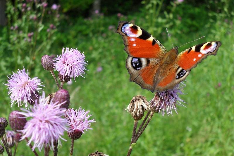 Schmetterling (Foto 2) und Strubbelkopf (Foto 7) würde ich der Spiegelreflex zuordnen - wegen der geringen Schärfentiefe. Bei den anderen ist das nicht so leicht zu erschließen, evtl. ist auch der Täubling (Foto 6) mit der Spielgelreflex aufgenommen worden. Solange das Licht einigermaßen stimmt, kann im Übrigen auch ein Knipsapparat gut mithalten.