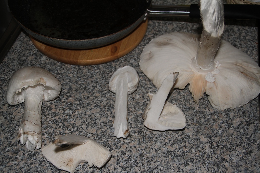Die Stilbasis fehlt: Hatte es da eine Knolle? Es gibt auch weisshütige Varianten des grünen Knollenblätterpilzes, der kann schon mal 20 cm im Hutdurchmesser erreichen. Oder vielleicht ist es eine Volvariella -Art? -