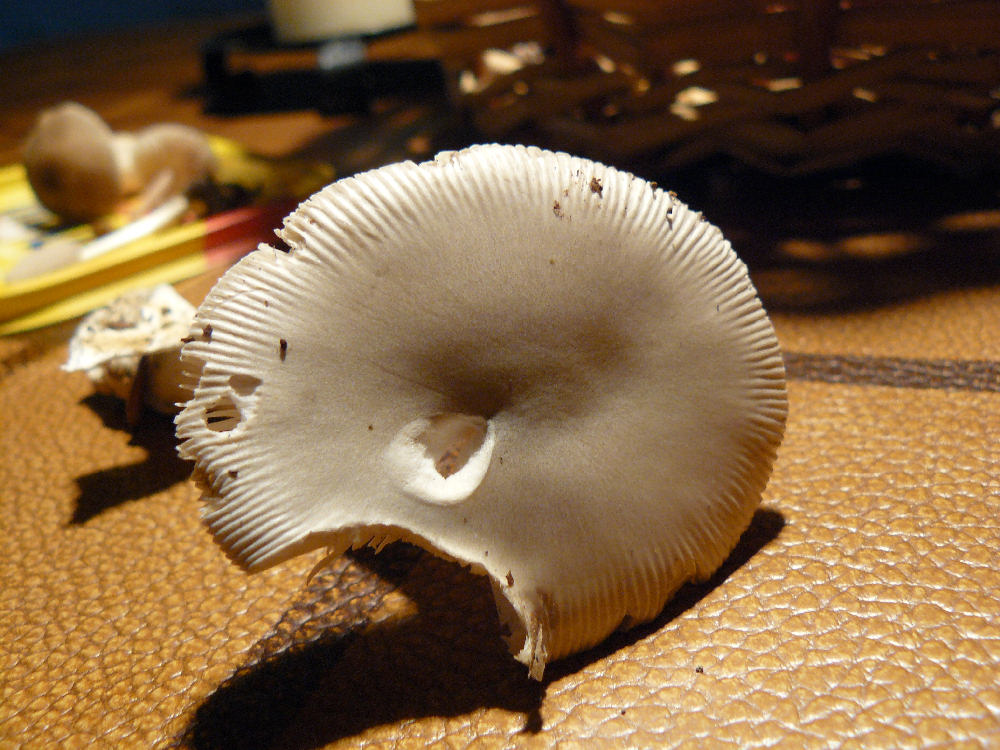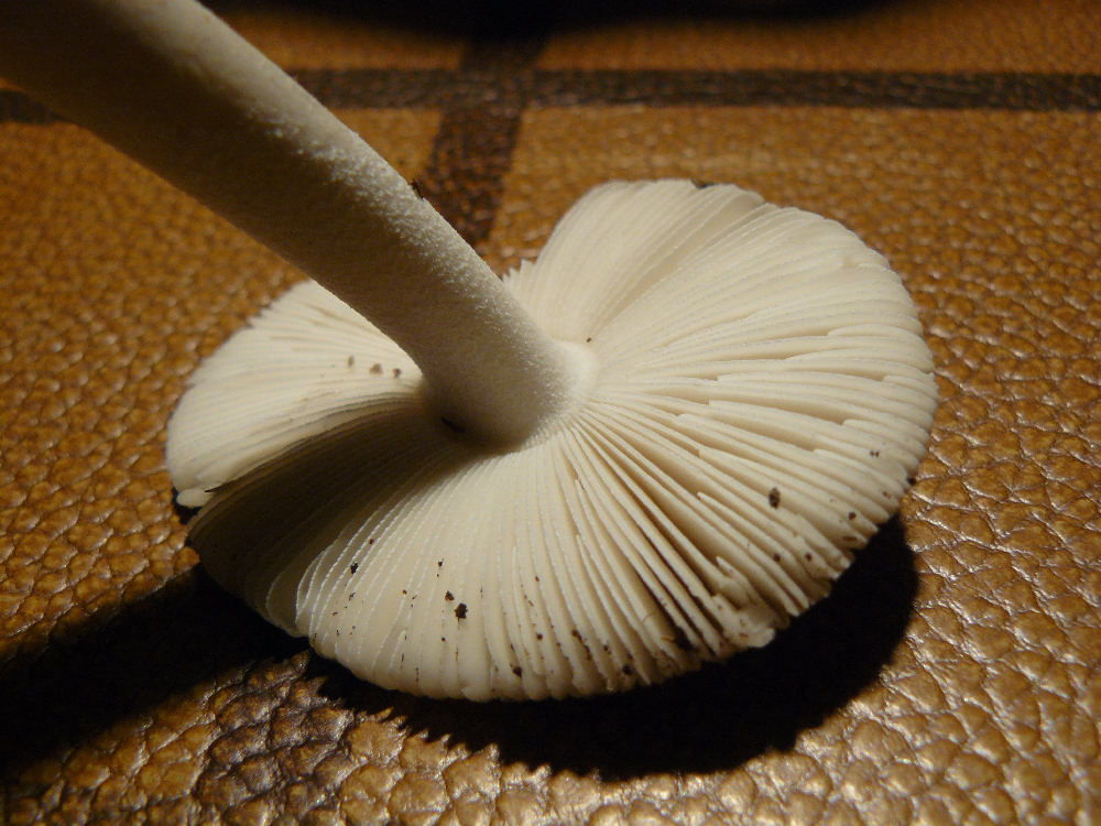 Ich dachte erst an Dachpilz - aber das Sporenpulver ist weiß