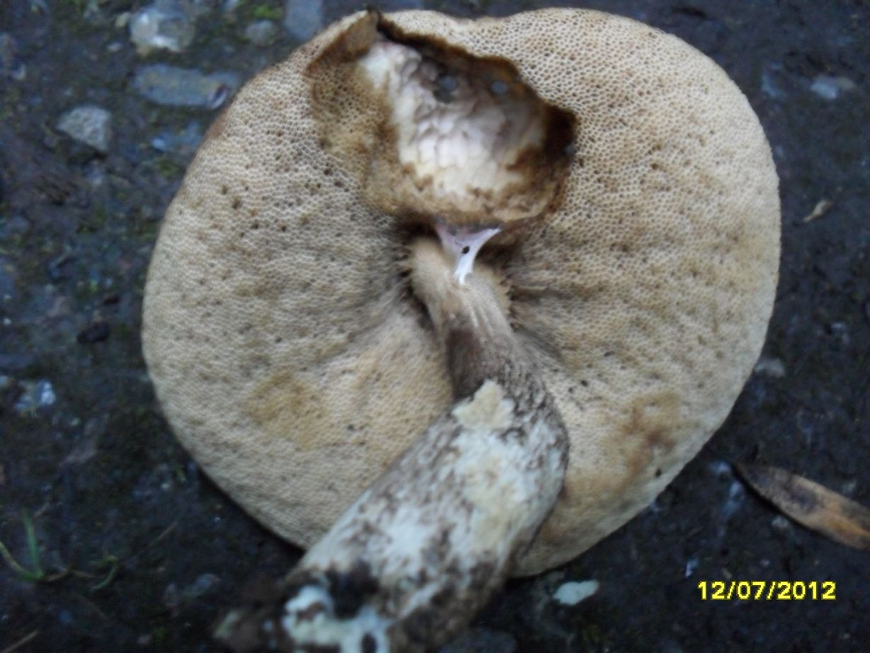 Röhren hellbraun und wie ich an dem Fraßloch sehen konnte bestand der Hut fast nur aus Röhren kaum Fleisch.
