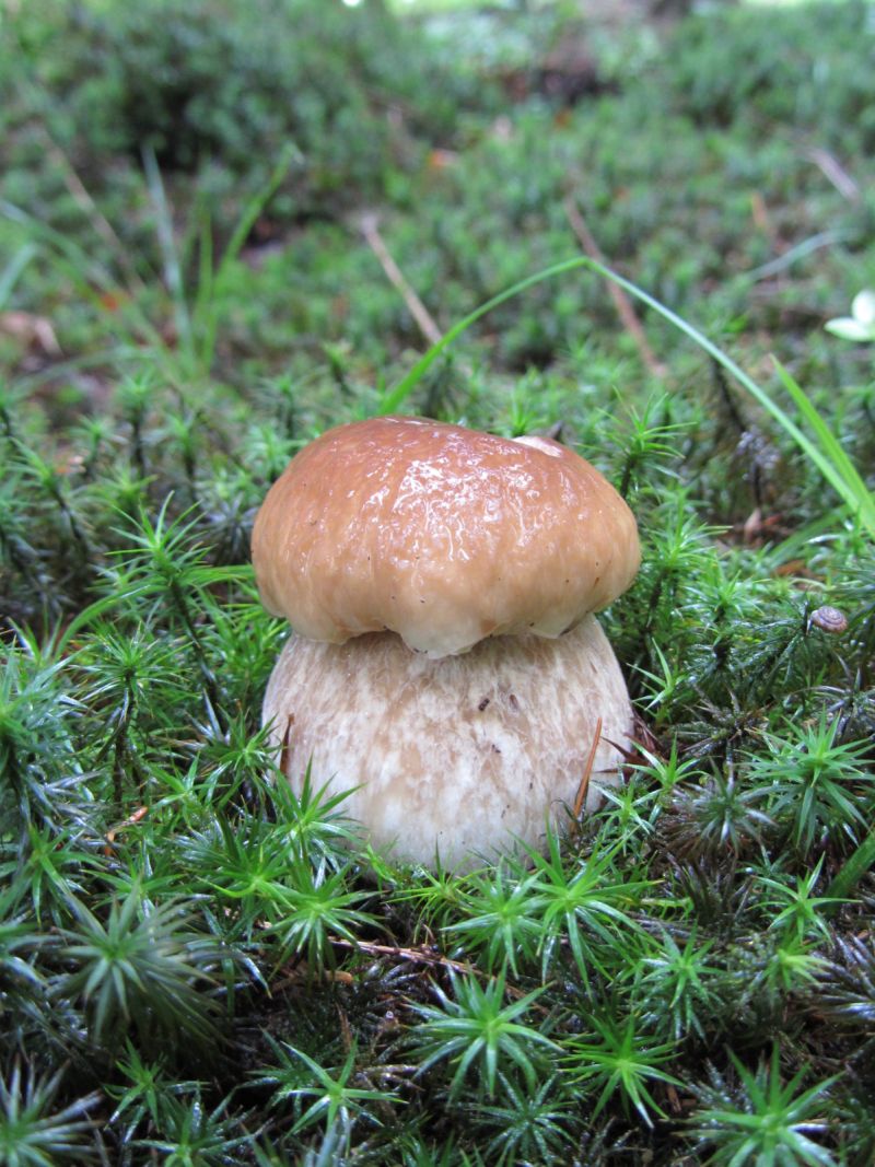 Im Jungfichtendickicht der erste Jungsteinpilz (B. Edulis):