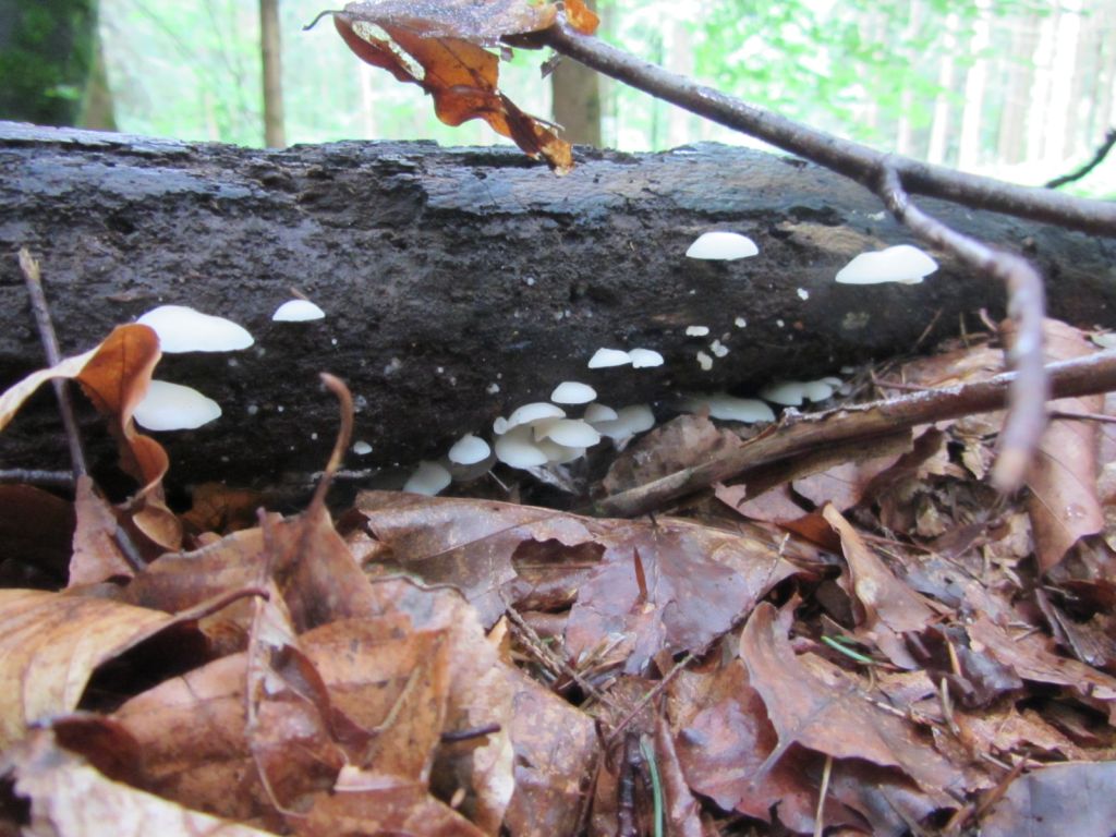 ..das "komische weisse" solltest du mal mit Stummelfüßchen (Crepidotus) vergleichen ;)